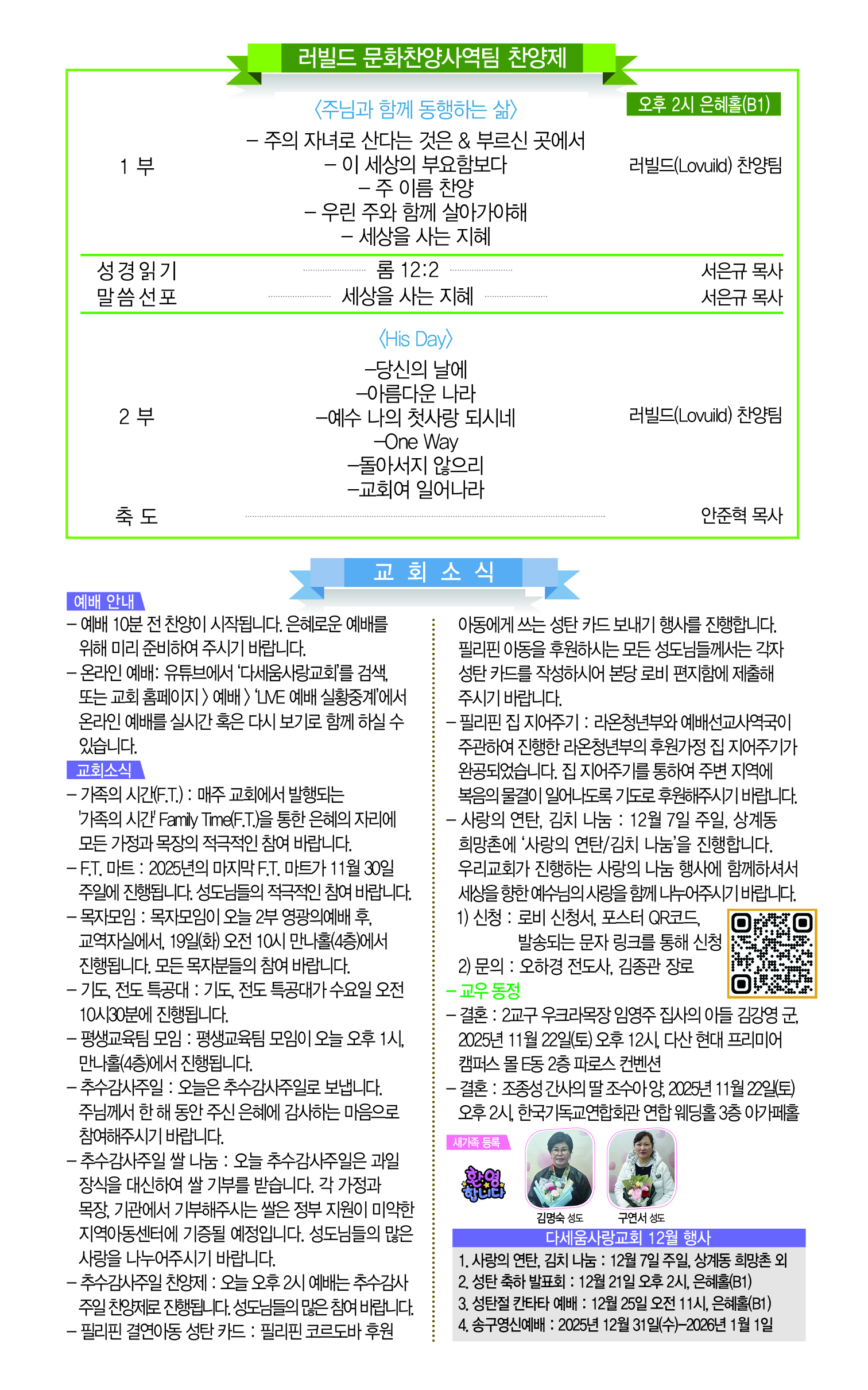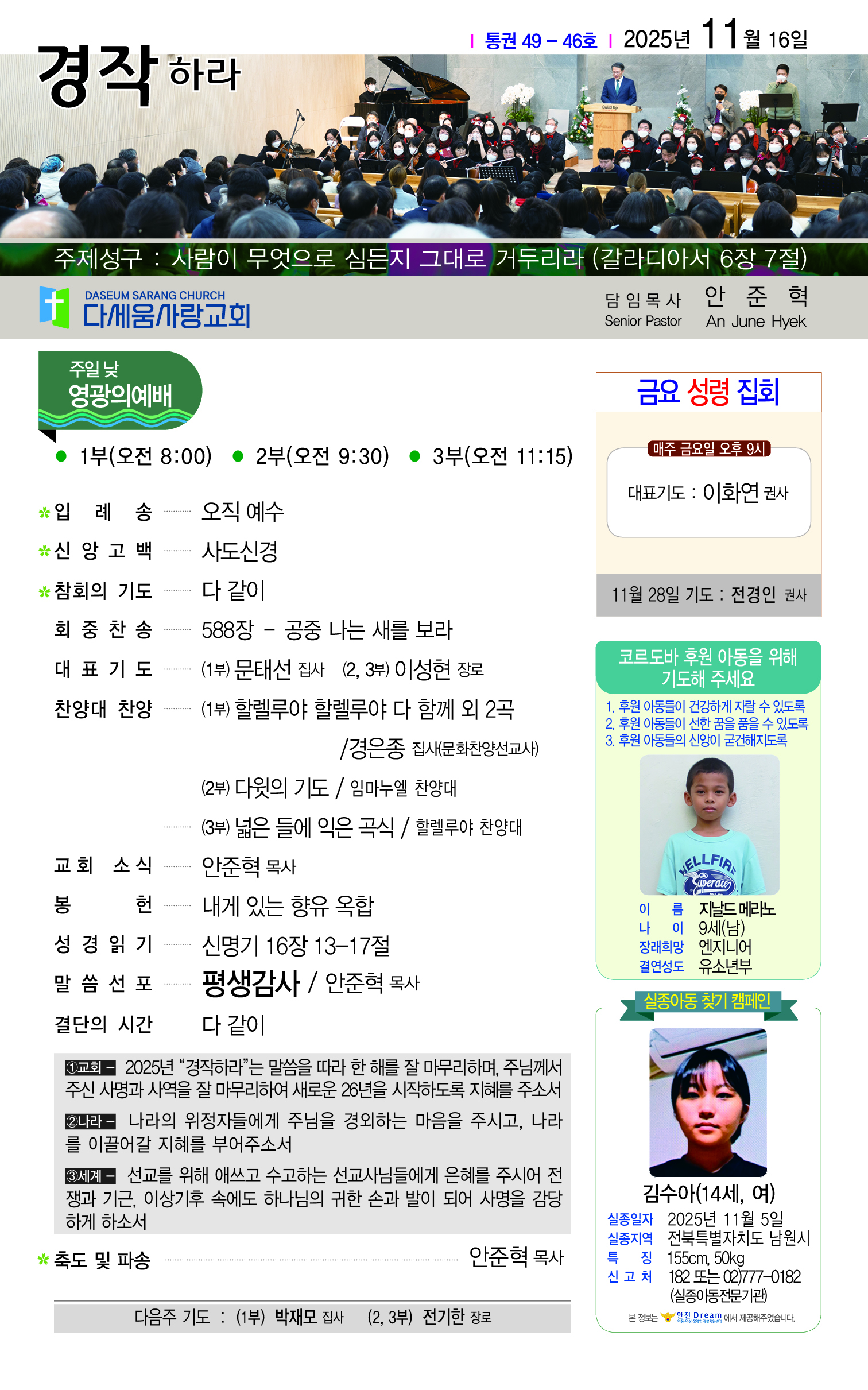 2025년 11월 23일 다세움사랑교회 주보