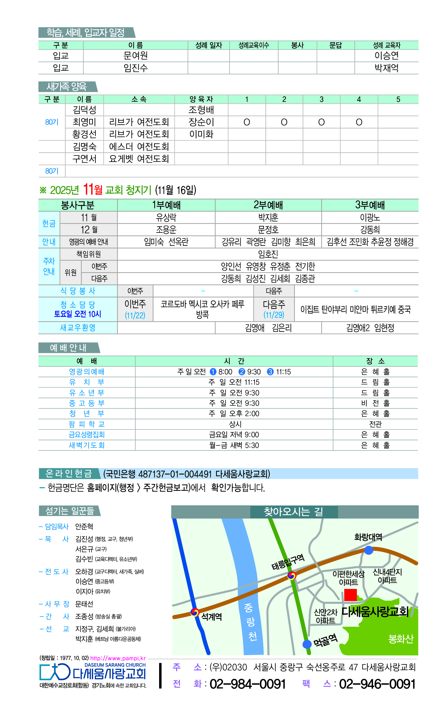 25년 11월 9일 다세움사랑교회 주보