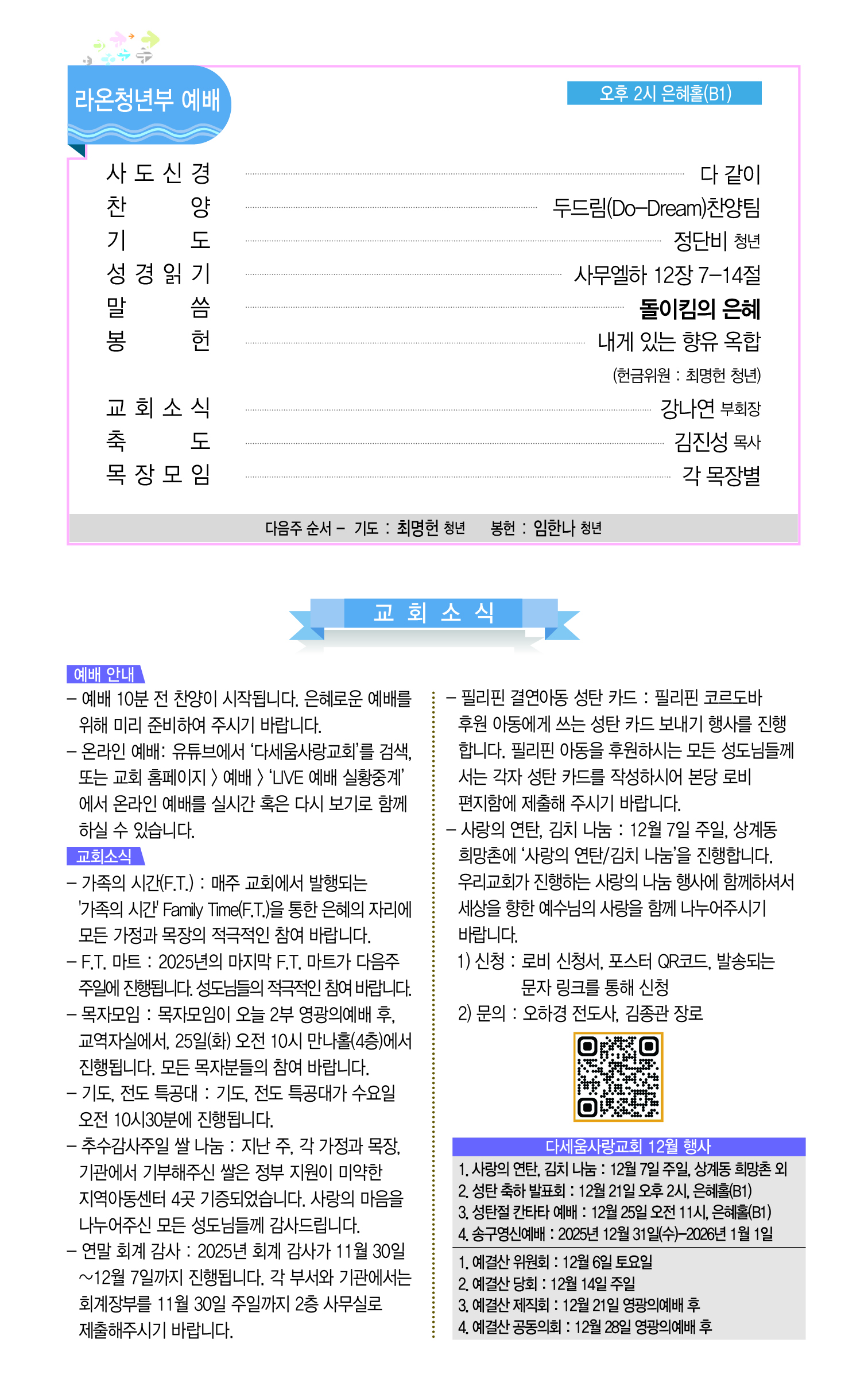 2025년 11월 30일 다세움사랑교회 주보