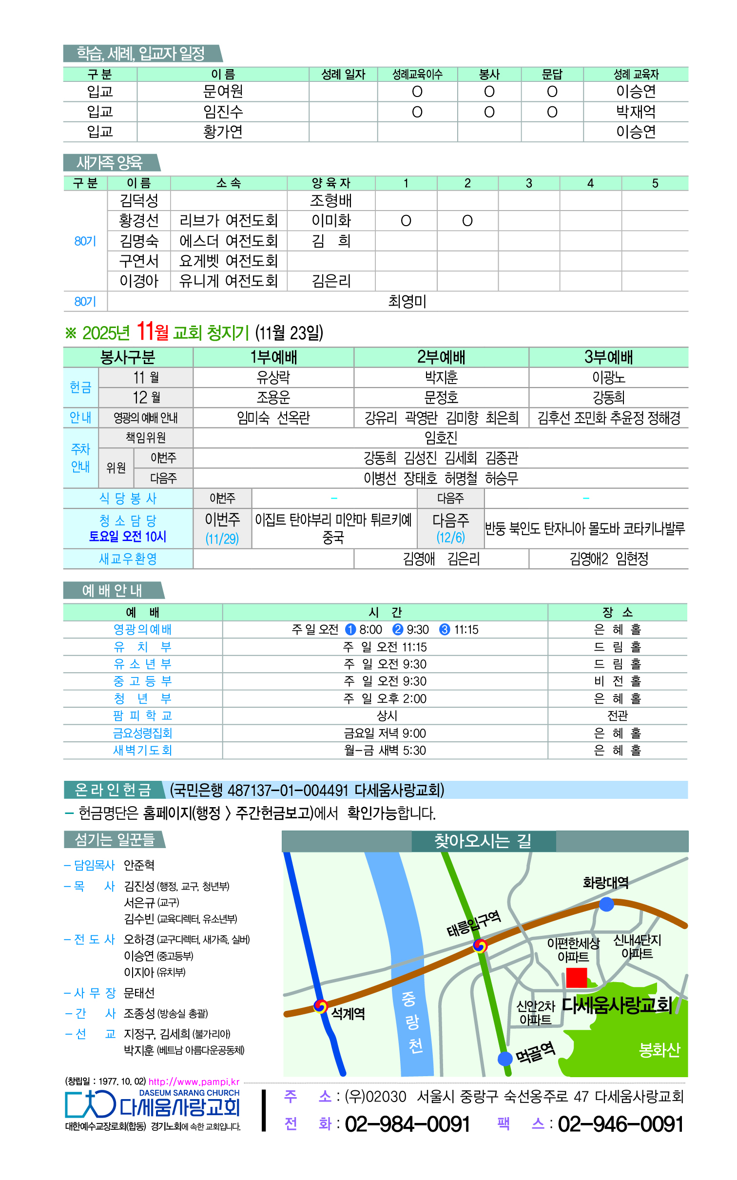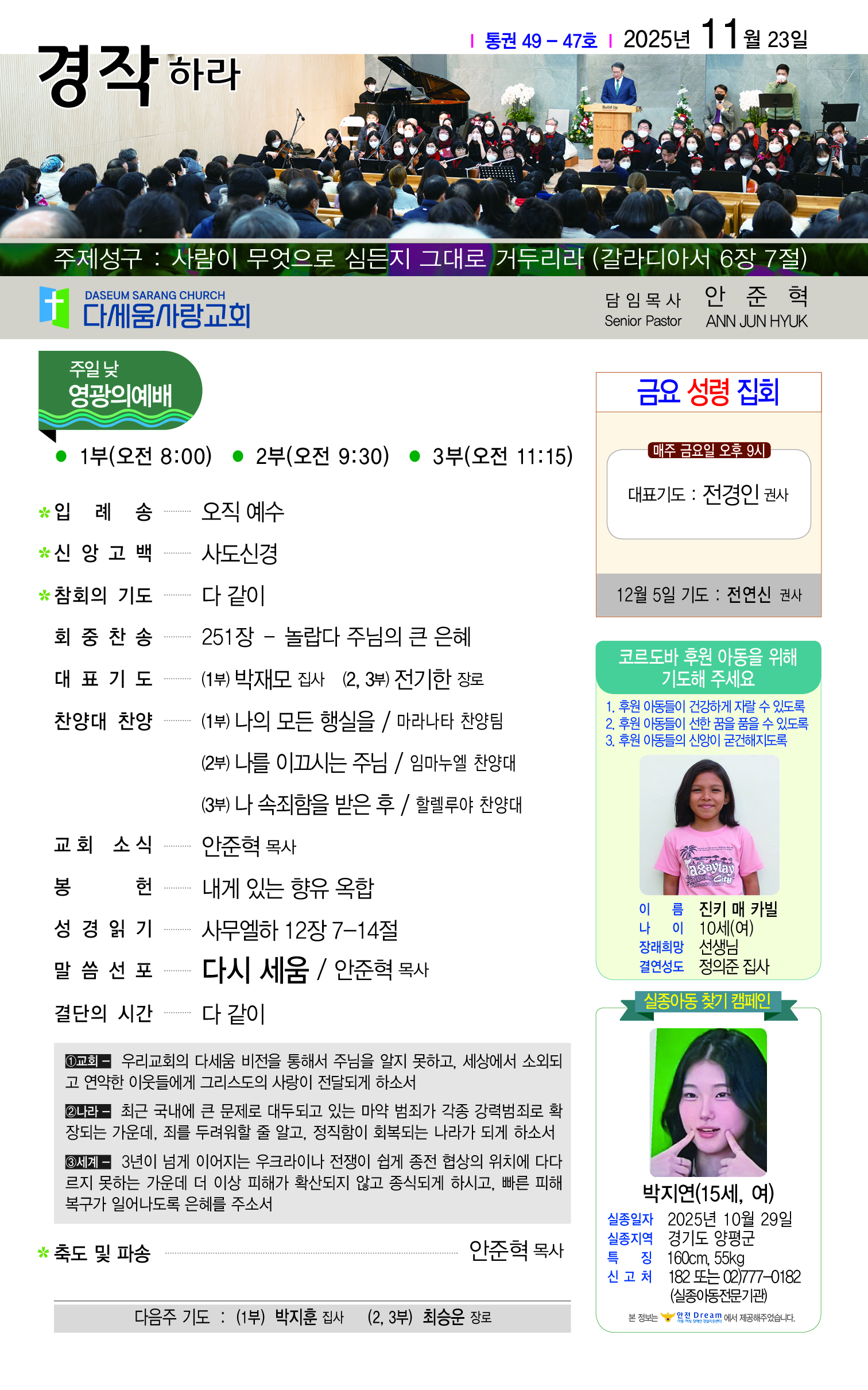 2025년 11월 23일 다세움사랑교회 주보