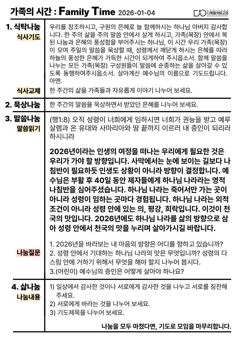 [26년 1월 둘째 주] 다세움사랑교회 가족의 시간(Family Time)